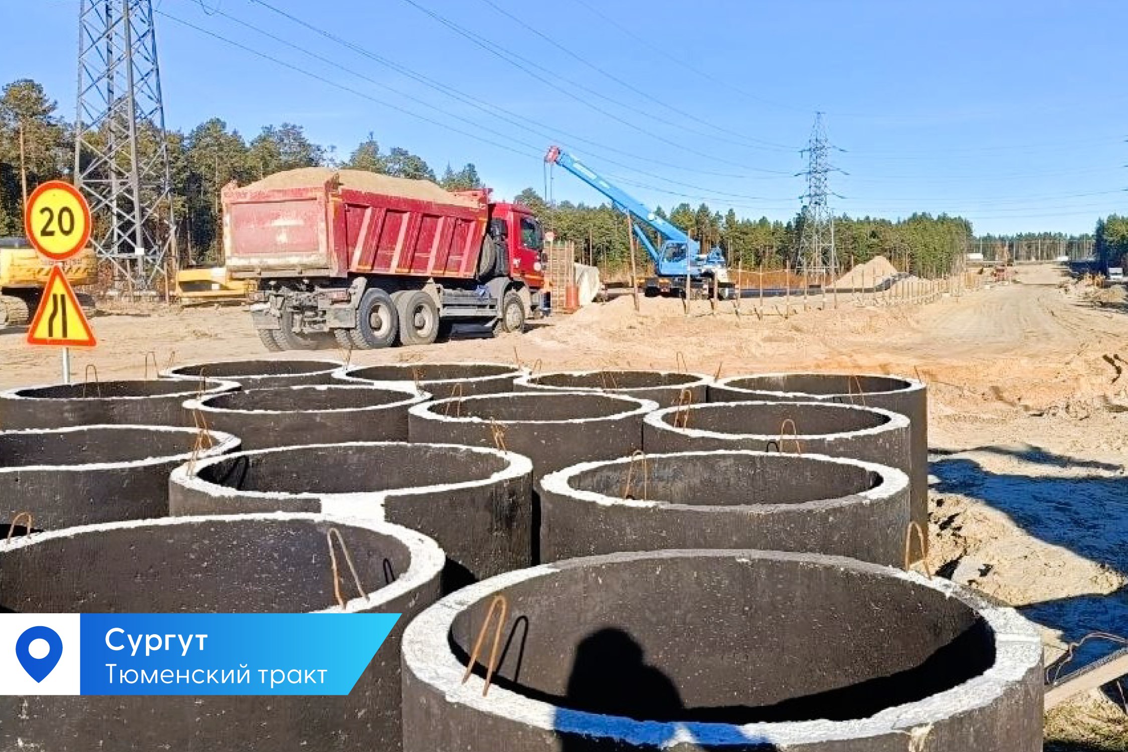 В Сургуте начали строить дорогу в районе Тюменского тракта. Завершение работ запланировано на 2026 год.