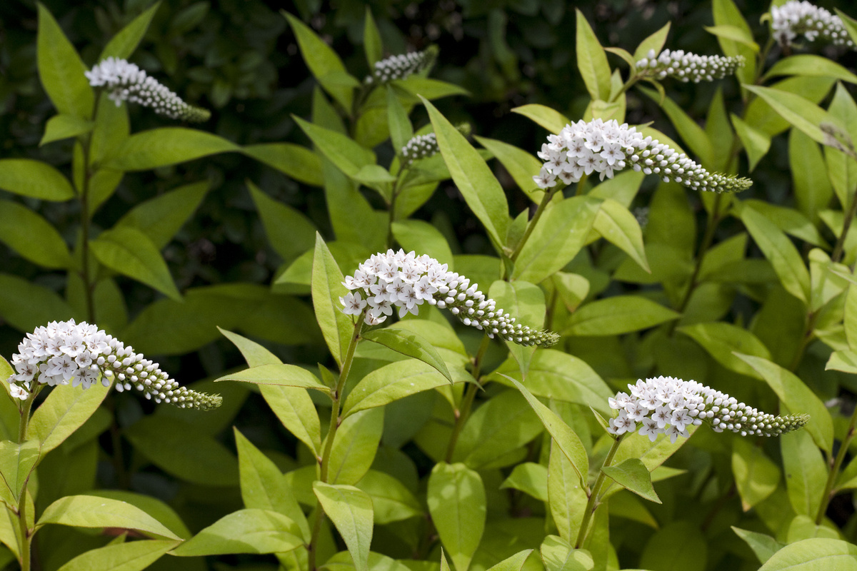 Вербейник клетровидный (Lysimachia clethroides) – корневищный многолетник, который родом из Китая, Японии и Кореи, привлекает внимание своим красивым обликом. Этот кустарник достигает высоты 90 см и ширины 60 см. Прямостоячие зеленые стебли покрыты узкими, заостренными листьями длиной до 13 см. Его звездчатые белые цветки собираются в густые колосовидные соцветия длиной 10-20 см, которые раскрываются на протяжении трех недель летом, начиная с июля.