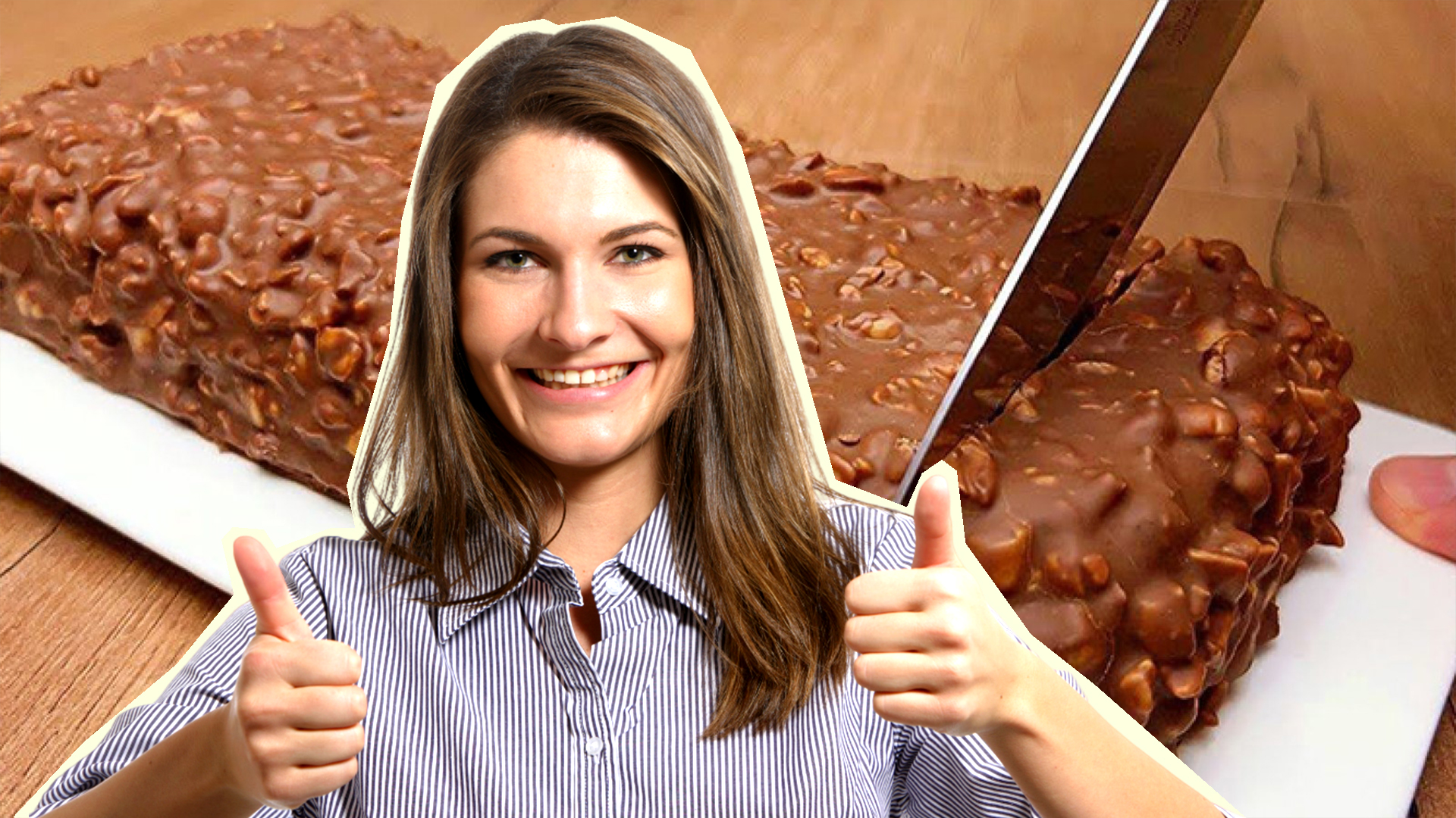 Возьмите 60 граммов очищенного жареного арахиса и разбейте в блендере. Затем растопите 120 граммов шоколада, добавьте 30 миллилитров растительного масла и молотые орехи. Теперь пермешайте и выложите вторым слоем в форму к печенью. Блюдо уберите в холодильник на полчаса, и все — можно резать и подавать на стол, советует автор YouTube-канала «Сытная еда».