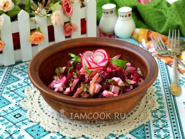 Приготовление свекольного салата с редисом и сыром