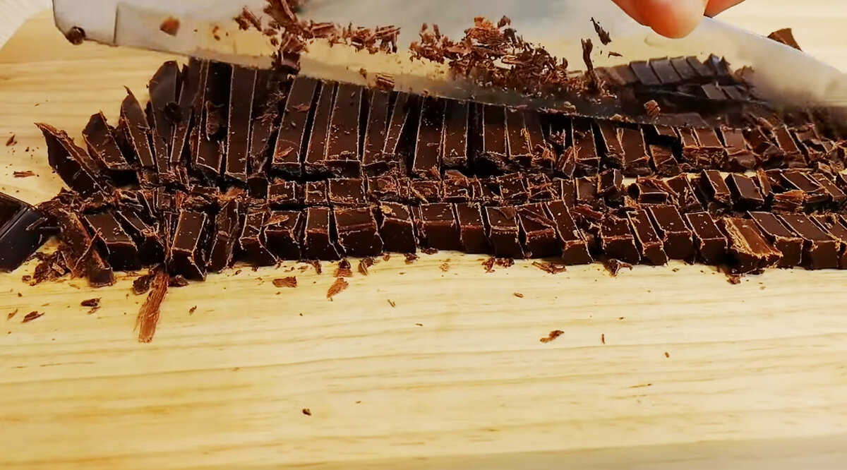 Для начала шоколад следует нарезать на небольшие кусочки и отправить их в кастрюлю, добавив правильное количество воды. Смешивание ингредиентов начнётся с медленного нагрева, при этом важно постоянно помешивать массу, чтобы шоколад равномерно растопился.