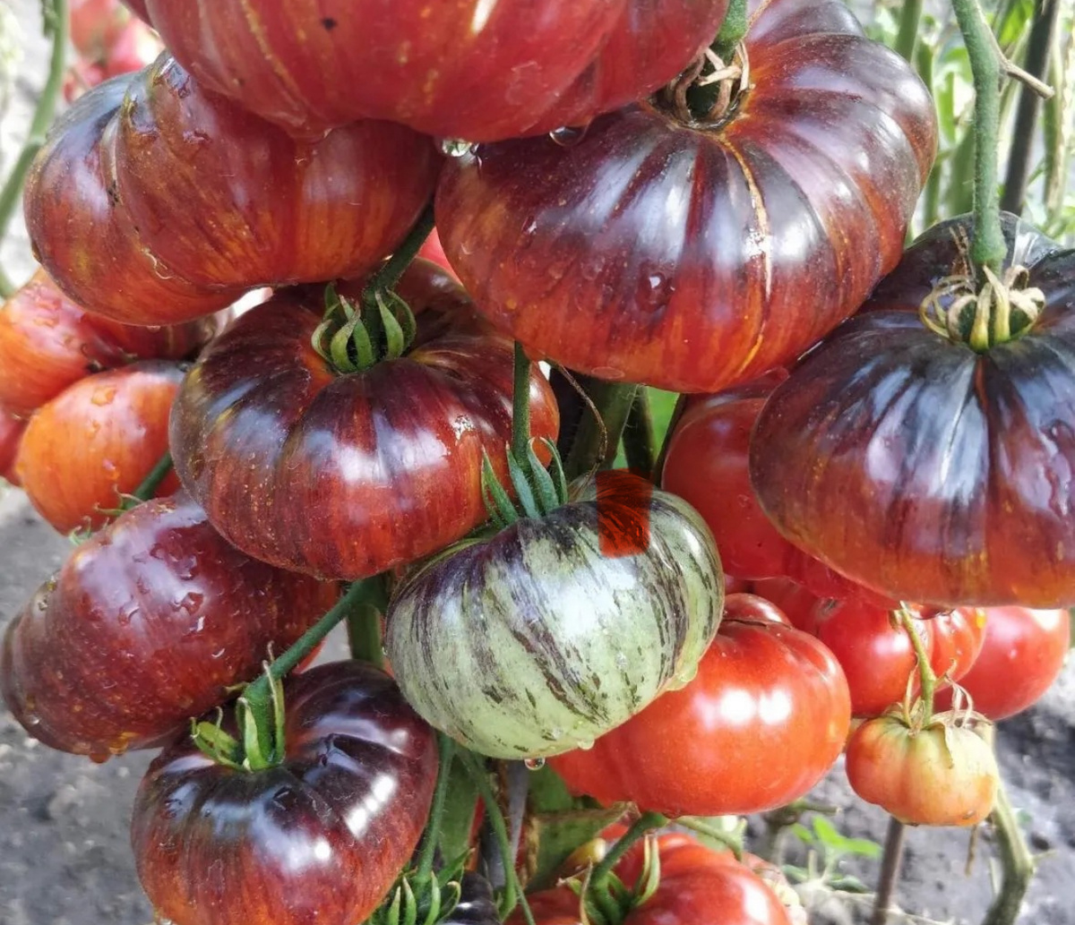 Кусты «Голубого голландца» демонстрируют полудетерминантный рост и обилие плодов. На каждой кисти завязывается 6-8 крупных помидоров весом от 150 до 250 граммов. При достаточном уходе — даже минимальном — можно собирать урожай в ведрах. Соседка автора собрала 30 литров с пяти кустов, а многие даже не столкнулись с проблемами, связанными с болезнями растений.