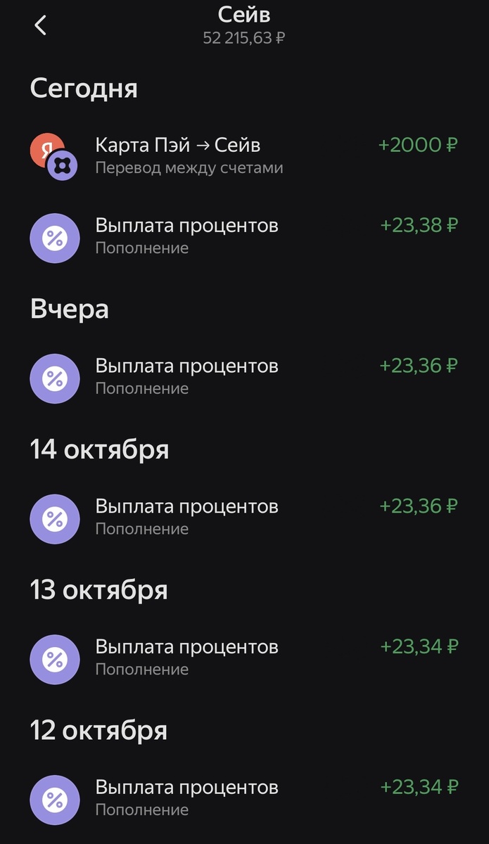 Открытие накопительного счета «Сейв» в Яндекс Банке в сентябре дало возможность воспользоваться заманчивой ставкой в 17% на первый срок в два месяца. С окончанием этого периода возникает вопрос о том, как действовать дальше — либо переводить средства, либо смириться с более низкими процентами. Примечательно, что капитализация процентов происходит ежедневно, позволяя получать выплаты и увеличивать баланс с каждым днём. Так, на 16 октября сумма на счету составила 52 215,63 рублей.