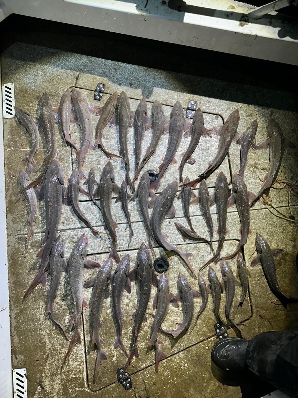 Когда его остановили, в сети находилось 38 осетров, 30 стерлядей, 8 сырков и один судак.