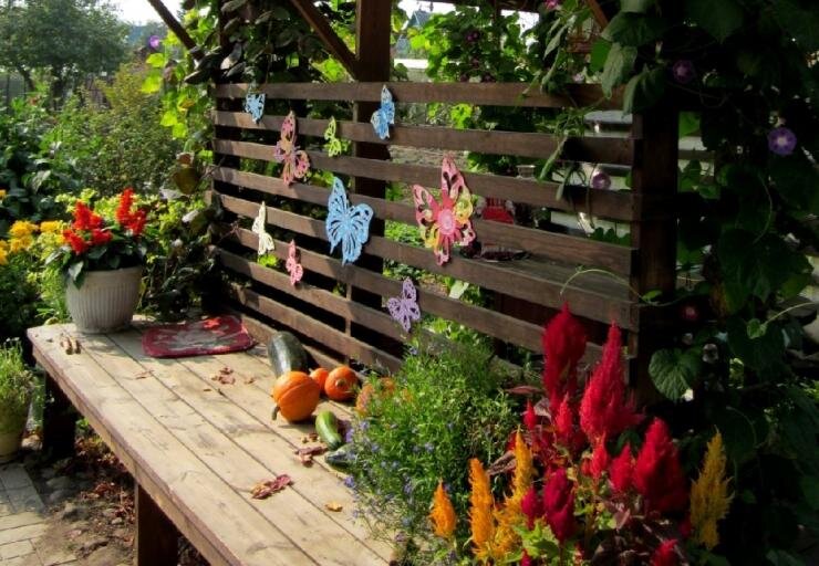 Эти яркие бабочки станут не только украшением беседки, но и смогут оживить забор или серую стену сарая. Они прекрасно дарят хорошее настроение и создают атмосферу уюта в саду.