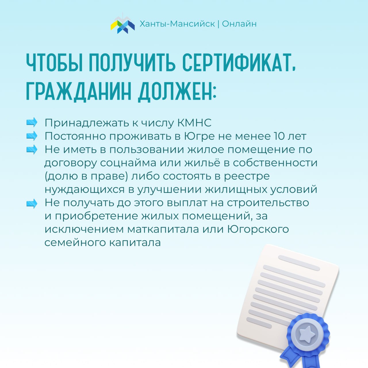 Граждане из числа КМНС смогут получить сертификаты на 100% от расчётной стоимости жилья. Подробнее об условиях льготной программы – в карточках.#hm_новости #хантымансийск