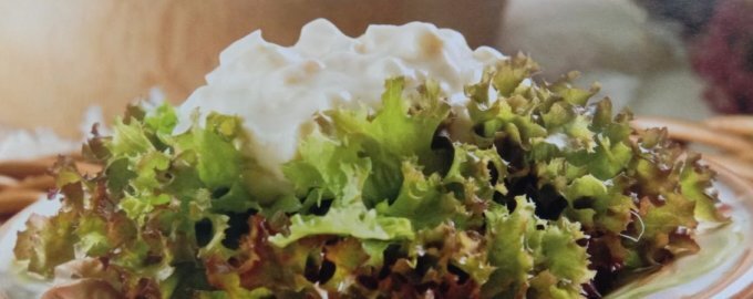 Алгоритм приготовления этого салата прост и быстър. Для начала необходимо отварить яйца до состояния "в мешочек" — так они будут более нежными и вкусными. Листья салата нарвите на крупные куски, весом около 200 граммов. Затем сбрызните их уксусом и аккуратно перемешайте, чтобы уксус равномерно распределился.