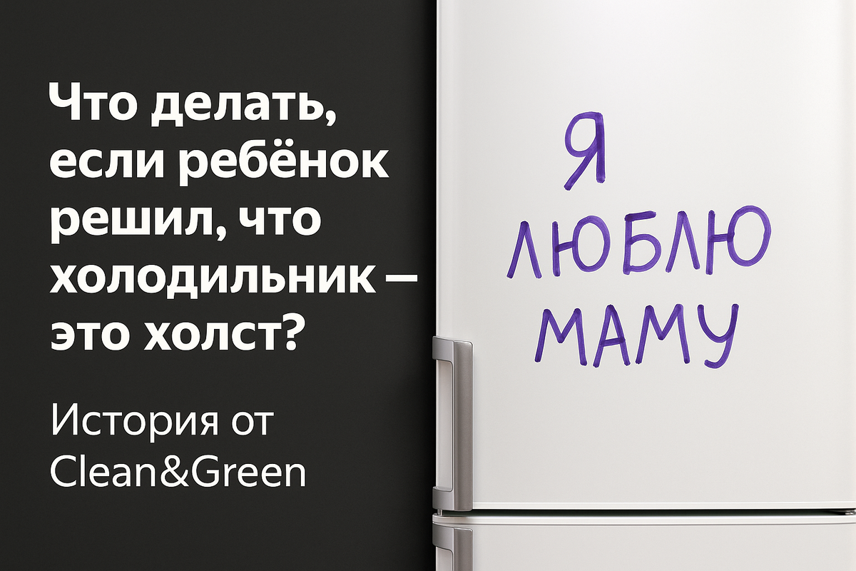Каждая семья может столкнуться с подобной ситуацией, когда маленький художник решит преобразовать обычные предметы в свои «произведения искусства». Хорошо, что с помощью такого средства, как Clean&Green, можно быстро и эффективно решить проблему, вернув холодильнику его прежний вид. Это именно то, что нужно для повседневной жизни, где холодильник служит не только местом хранения еды, но и случайным холстом для юных творцов.