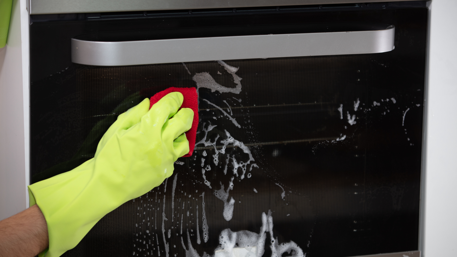 На дверце духового шкафа со временем появляются загрязнения. Стекло пачкают брызги жира, затем они частично размазываются, а частично сгорают, оставляя после себя слой копоти. Оттереть пятна сложно.