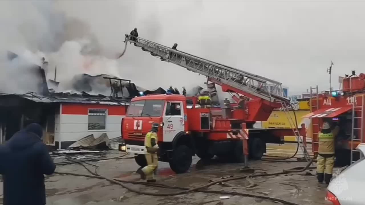 Пожар распространился на площадь около 250 квадратных метров, произошло обрушение кровли магазина. В ходе тушения пожарные вынесли из помещения 40 газовых баллонов.