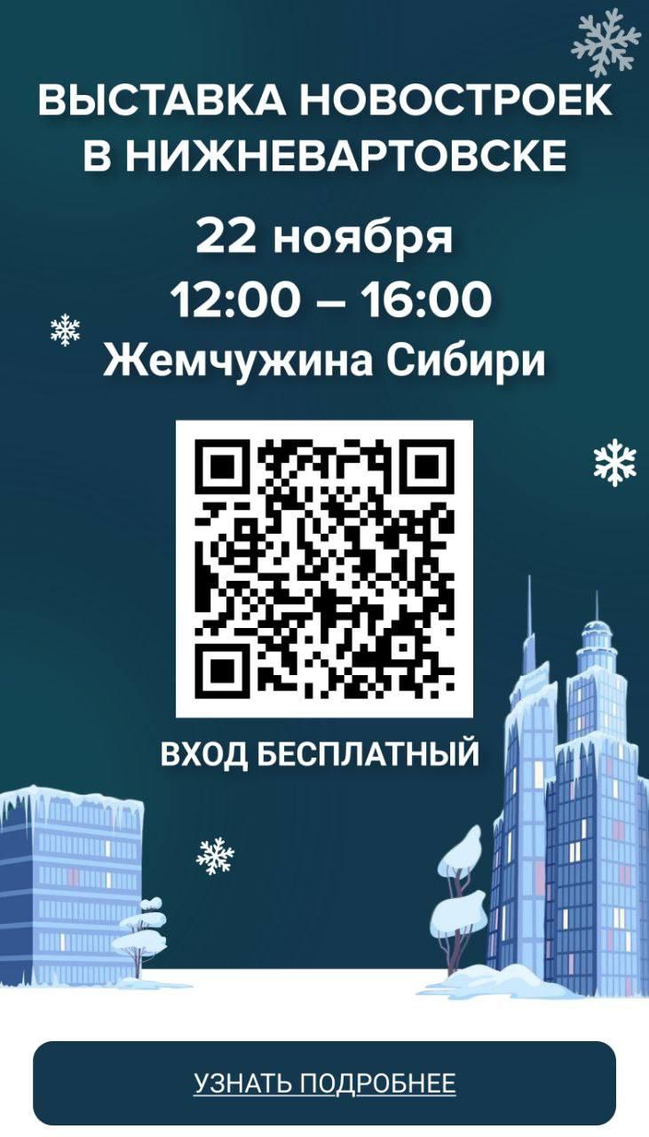 «Выставка новостроек» состоится 22 ноября с 12:00 до 16:00 по адресу: г .Нижневартовск, 60 лет Октября, 6А, 1 этаж конференц-зал, Жемчужина Сибири. Вход свободный.