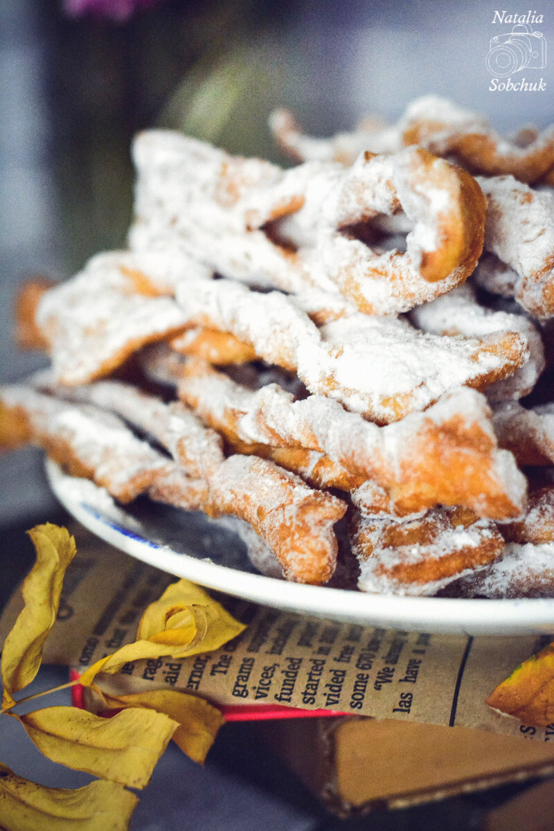 Когда тесто отдохнет, присыпьте рабочую поверхность мукой и разделите тесто на две части. Каждую раскатайте в тонкий пласт толщиной 2-3 мм, затем нарежьте на полоски. В центре каждой полоски сделайте небольшой надрез и аккуратно перекиньте уголки, формируя хворост. В разогретом масле жарьте до золотистого цвета, после чего выкладывайте на бумажные полотенца, чтобы избавиться от излишков масла. Напоследок посыпьте готовый хворост сахарной пудрой и наслаждайтесь!