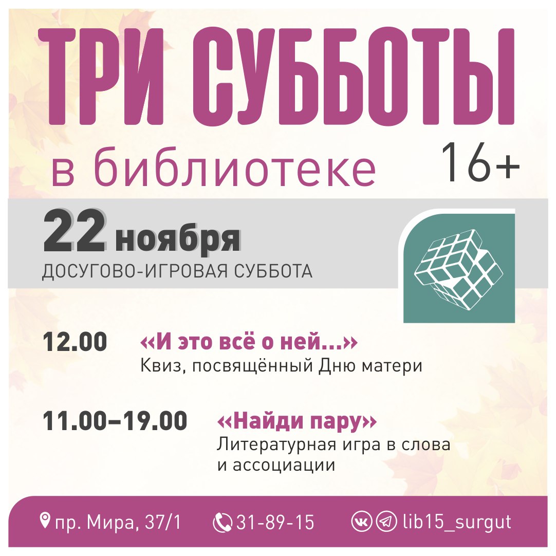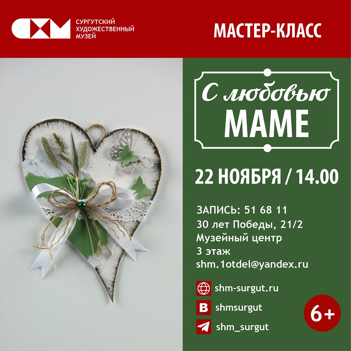 В выходные дни вы также можете посетить череду интересных мастер-классов в ИКЦ «Старый Сургут». Билеты в кассе ИКЦ «Старый Сургут» и на сайте: https://stariy-surgut.ru/