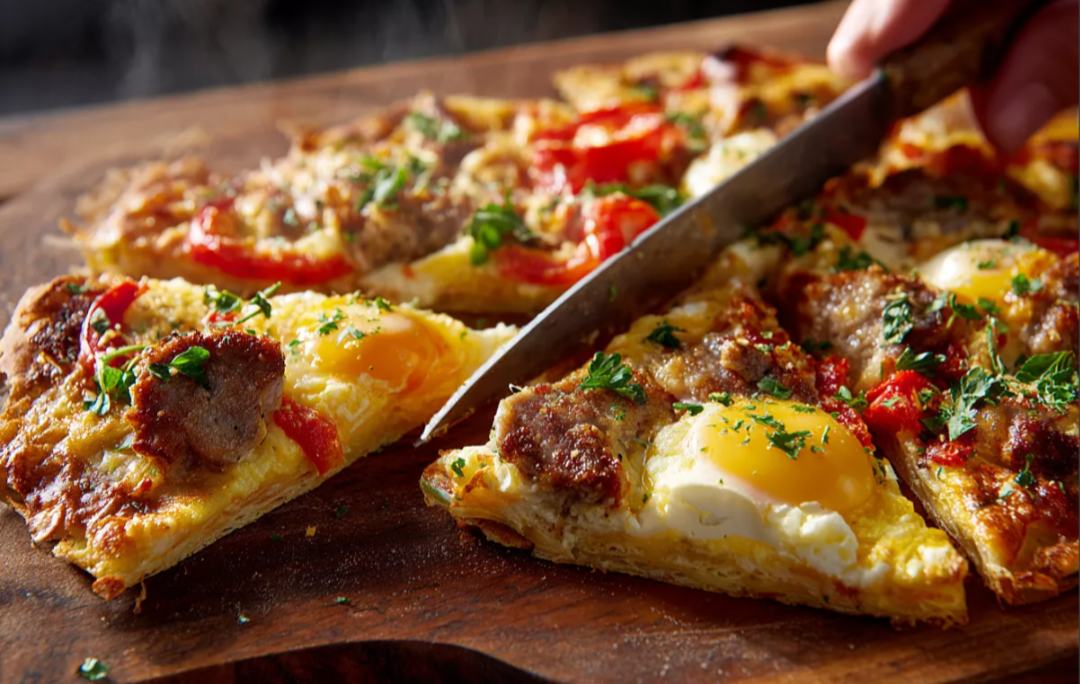 Эта многослойная пицца с хрустящим лавашем, тянущимся сыром и сочными овощами — великолепный вариант для завтрака. Подавать стоит горячей, чтобы насладиться поистине удивительным вкусом!