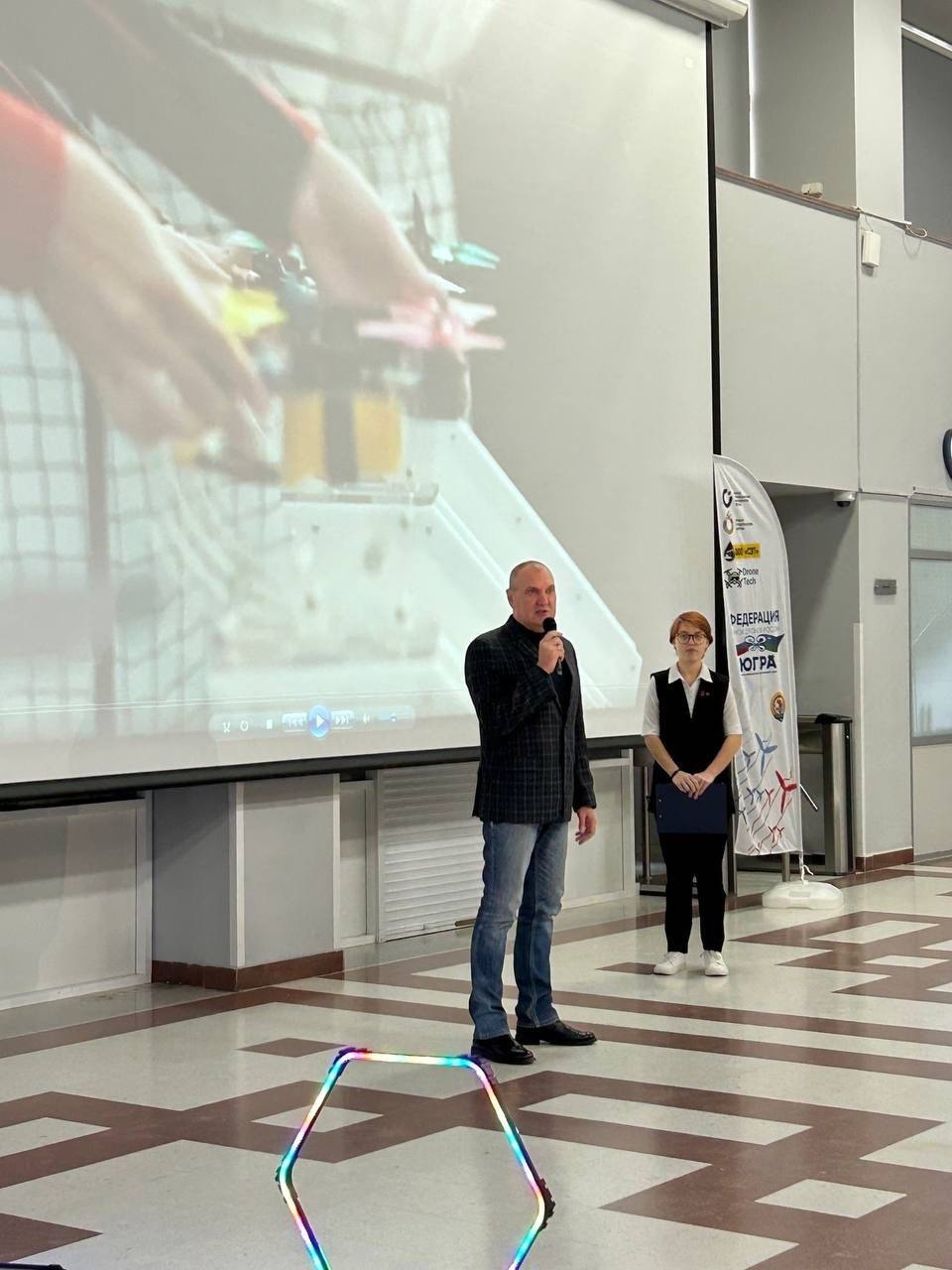 Для гостей были организованы интерактивные площадки, где каждый желающий смог с помощью дрона поиграть в баскетбол или собрать летательный аппарат из фанеры.