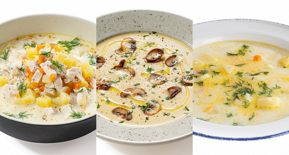 - Суп «Четыре сыра» — для настоящих гурманов! Здесь вас ждет комбинация чеддера, пармезана, моцареллы и голубого сыра. Результат — вкусное и оригинальное блюдо, способное поразить даже самых требовательных гостей.