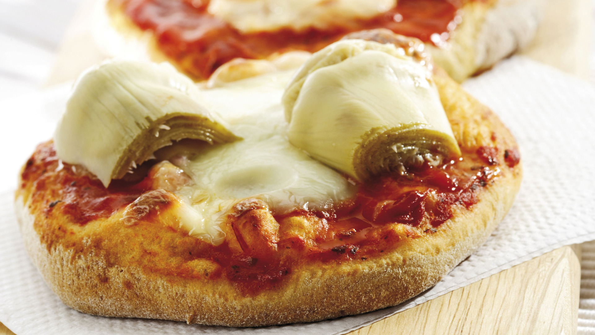 Раскатанное тесто нужно поделить на 12 кружочков и выложить на противень, застеленный бумагой для выпечки. Порции следует смазать кетчупом, выложить на него засахаренный лук и сыр. Пиццы в разогретой до 200 градусов духовке выпекать всего 10-15 минут.