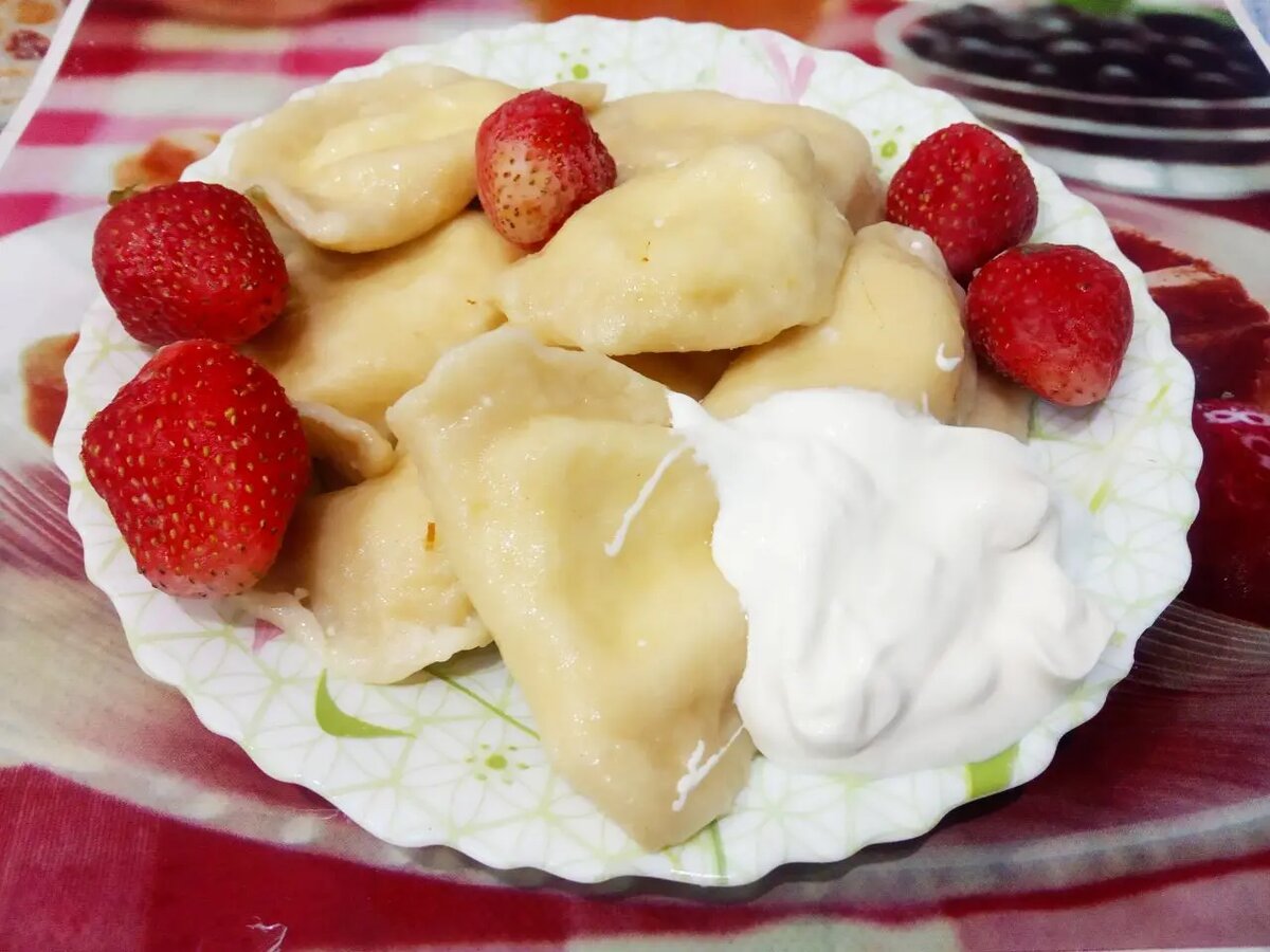 Вареники подаются горячими, и отлично сочетаются со сметаной и свежими ягодами. Это блюдо не только насытит, но и подарит массу удовольствия. Комбинируя разные начинки и способы приготовления, можно получить множество интересных вариантов, которые понравятся всей семье.