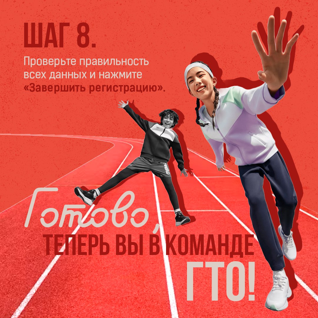 Чтобы принять участие в испытаниях ГТО и следить за своими спортивными достижениями, зарегистрируйтесь в личном кабинете на сайте комплекса. Пошаговая инструкция — в карточках.