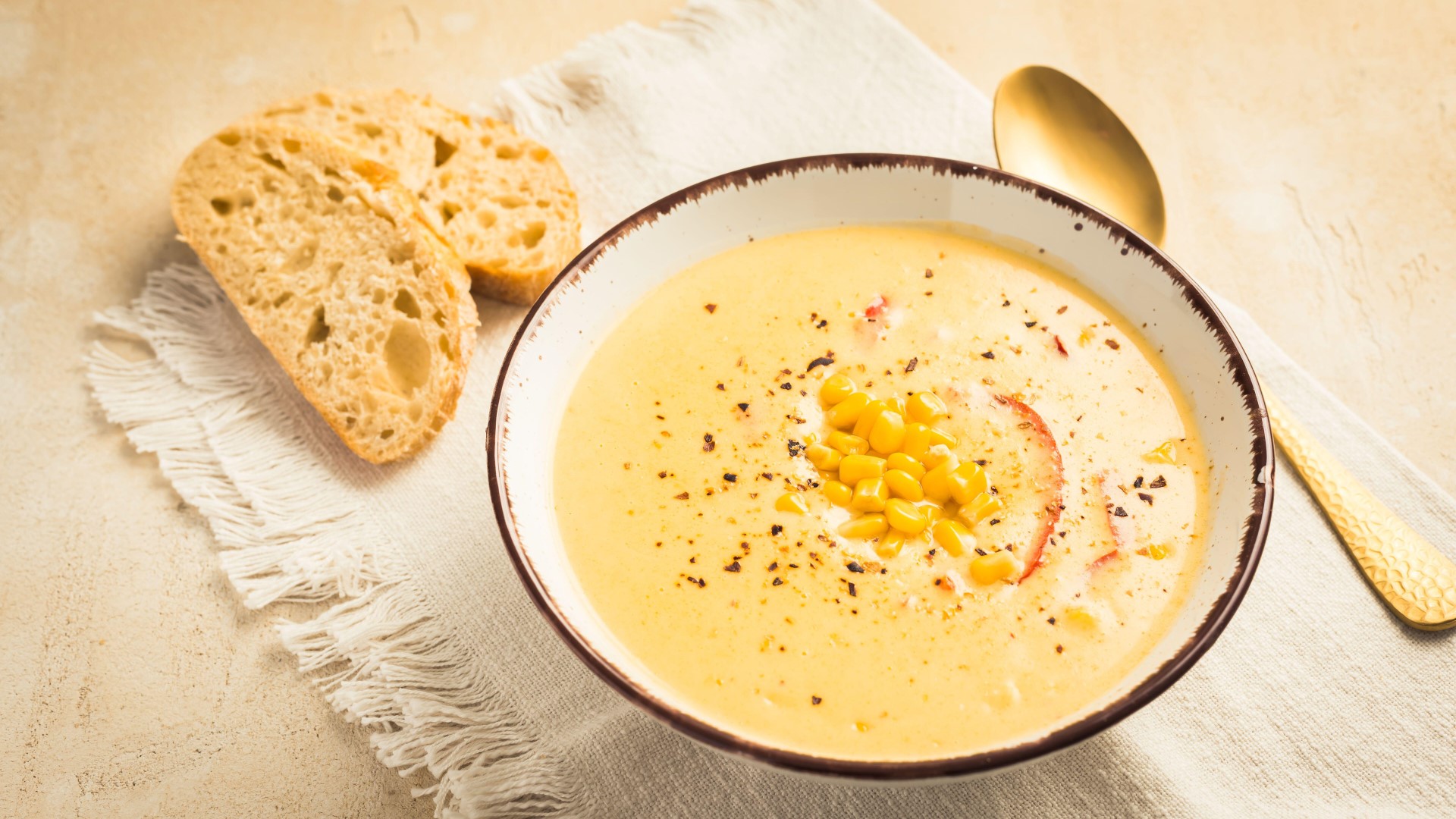 Добавьте к сливкам пюре из кукурузы. Кипятить массу не нужно, лишь прогреть. Посолите суп и введите масло, а затем всыпьте отложенные цельные зерна кукурузы, советует портал «Лайфхакер».