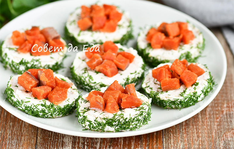Теперь главное: нарезанную небольшой кубиками красную рыбу удобно разместить в центре каждого круга. Эти бутерброды не только бросаются в глаза за счет ярких цветов, но и обладают истинным вкусом, который оставляет приятное послевкусие.