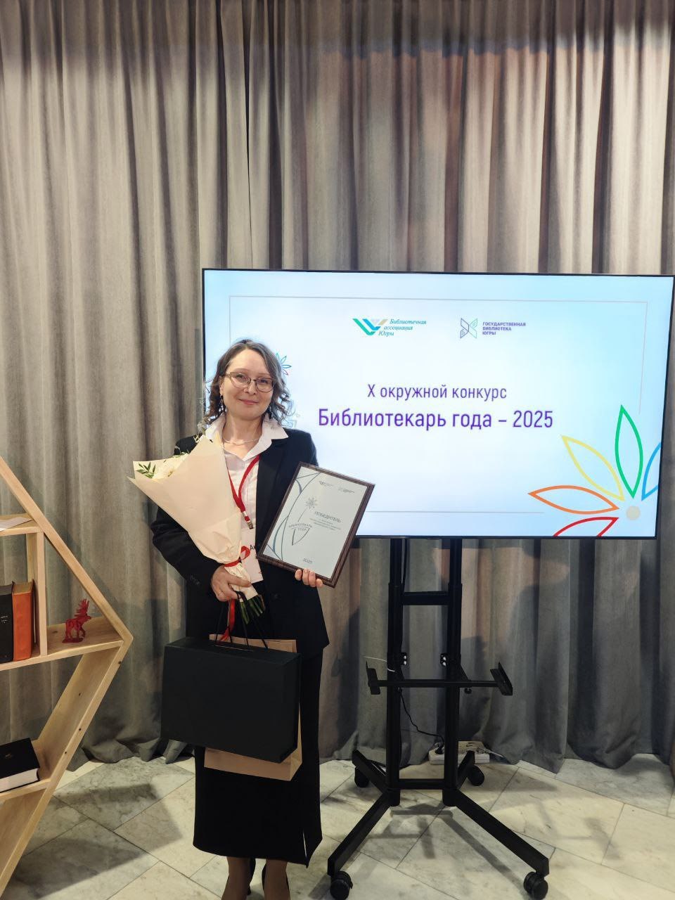 Заведующий отделом обслуживания Центральной городской библиотеки им. А. С. Пушкина Централизованной библиотечной системы Анна Бурыкина стала победителем в профессиональном X окружном конкурсе «Библиотекарь года – 2025», который состоялся сегодня в Ханты-Мансийске.