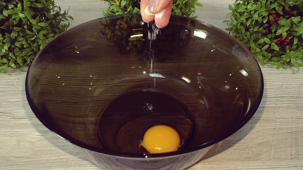Для начала необходимо соединить яйцо с солью в глубокой миске. Далее добавляют сахар — оптимально использовать 3 столовые ложки без горки, чтобы печенье получилось умеренно сладким. С помощью венчика все ингредиенты тщательно перемешивают.