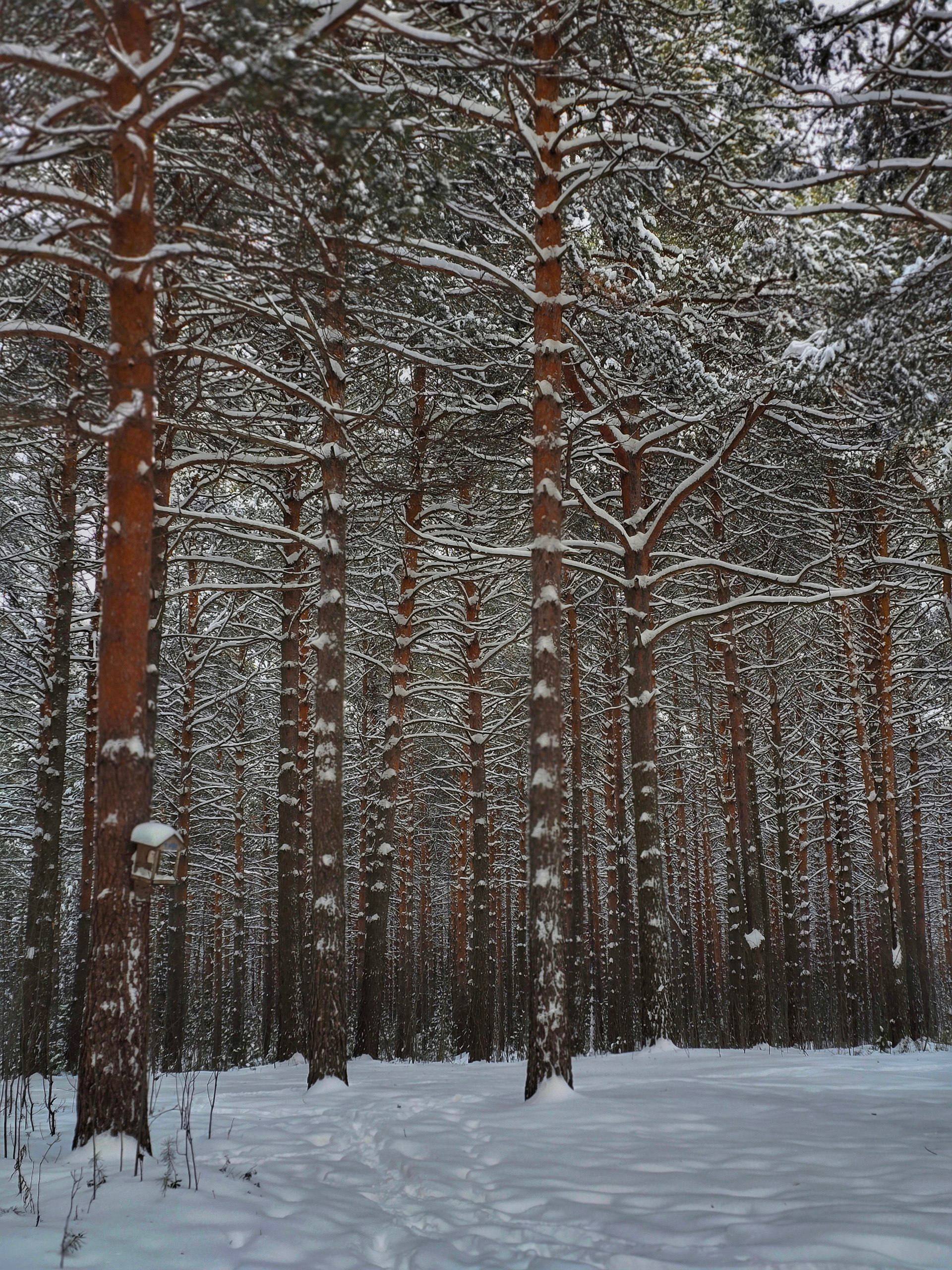 Сверкающие искры инея на ветках деревьев и мягкое зимнее солнце создают атмосферу уюта и спокойствия.