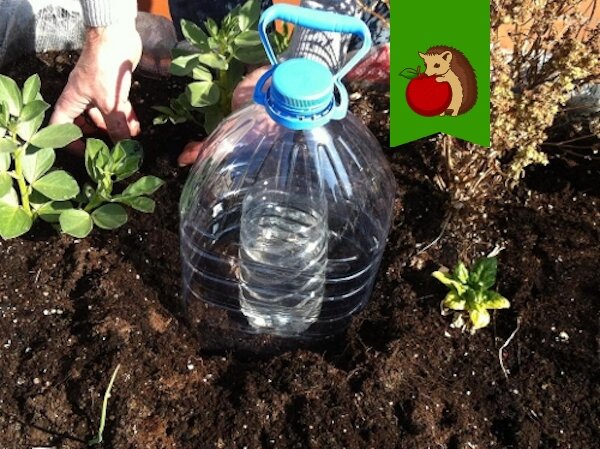 С помощью комбинации двух бутылок — 1,5-литровой и 5-литровой — можно добиться ещё большего эффекта. Нижняя часть маленькой бутылки помещается в землю без отверстий, а над ней устанавливается большая бутылка, отрезав её дно. Влага будет испаряться из маленькой бутылки и конденсироваться на поверхности большой, проникая в почву. Это удобно, так как видно, сколько воды осталось в системе.