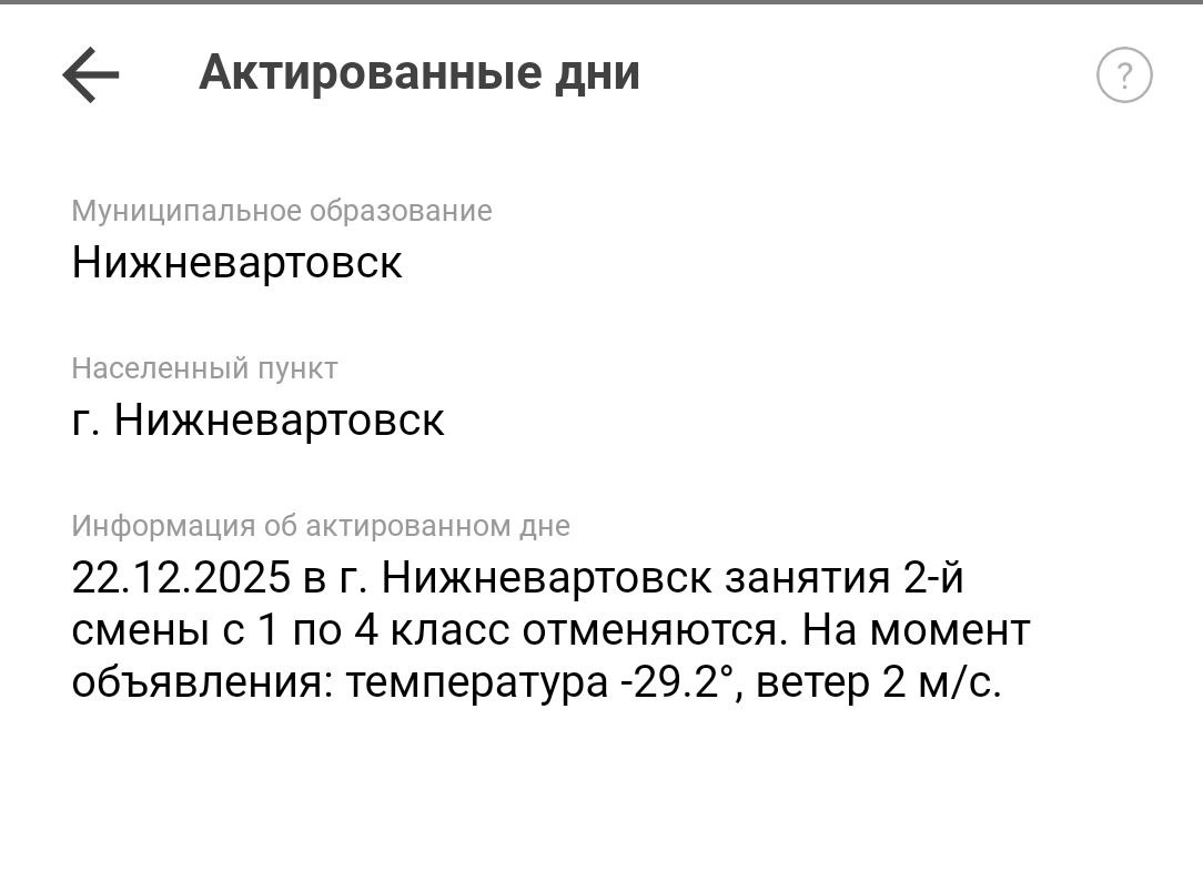 С наступлением в Югре холодов вновь становится актуальным вопрос о получении информации об «актировках».Получить достоверную информацию о неблагоприятных погодных условиях школьники и родители могут в национальном мессенджере MAX.В...