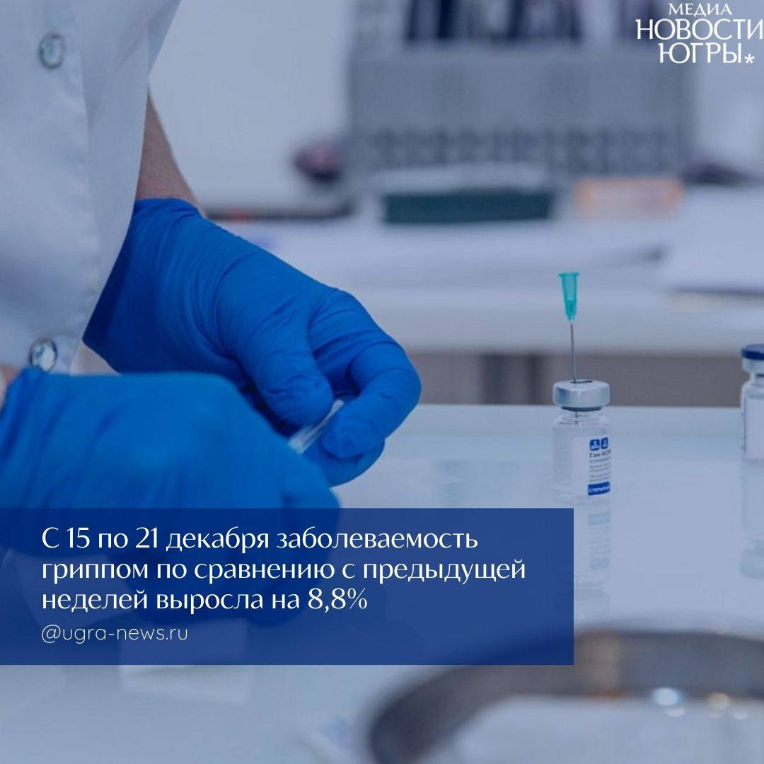 С 15 по 21 декабря заболеваемость гриппом по сравнению с предыдущей неделей выросла на 8,8% и составила 7 случаев на 10 тыс. населения. Как сообщает Роспотребнадзор по Югре, грипп зарегистрирован в 20-ти муниципальных образованиях. Наибольшая заболеваемость отмечается среди детей от 0 до 2 лет и составляет 48 случаев на 10 тысяч населения.