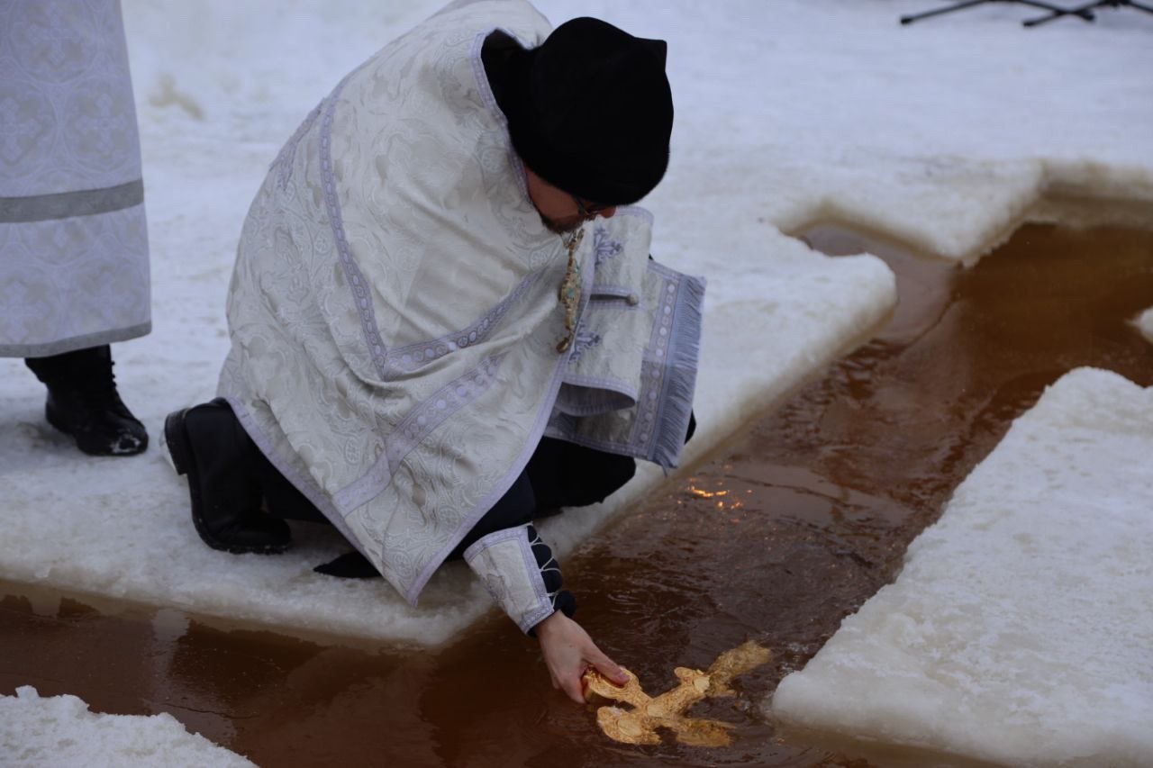 По данным МКУ «Управление по делам ГО и ЧС», толщина льда на реке превышает 40 см - соответствует нормам безопасности. У иордани организуют палатки для переодевания, раздачу горячего чая, дежурство спасателей и автобусы для обогрева.