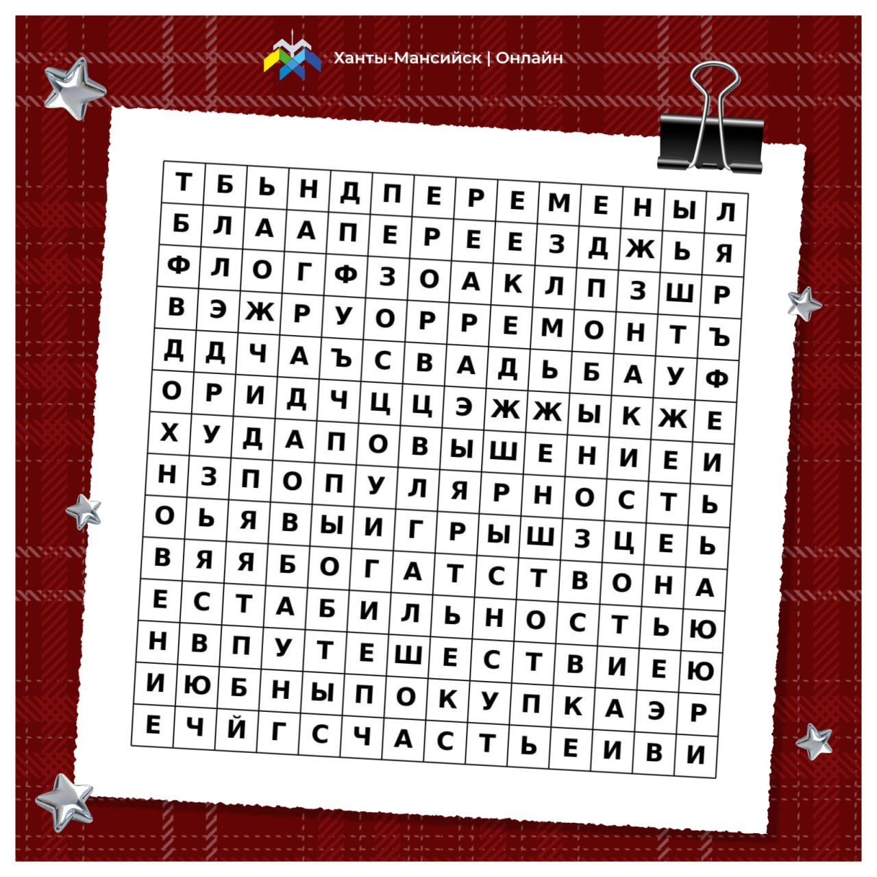 Готов узнать, что приготовил для тебя Новый 2026 год? Спрятанные слова откроют завесу тайны. Ищи подсказки и делись своими находками в комментариях к этому посту в нашем в сообществе ВКонтакте «Ханты-Мансийск|Онлайн»