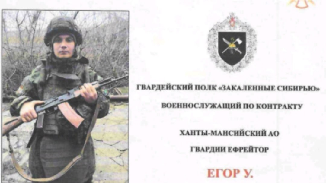 Гвардии ефрейтор Егор У. — военнослужащий из Ханты-Мансийского автономного округа Югры, который заключил контракт с Минобороны и служит в составе 40-го инженерно-сапёрного гвардейского полка «Закаленные Сибирью».