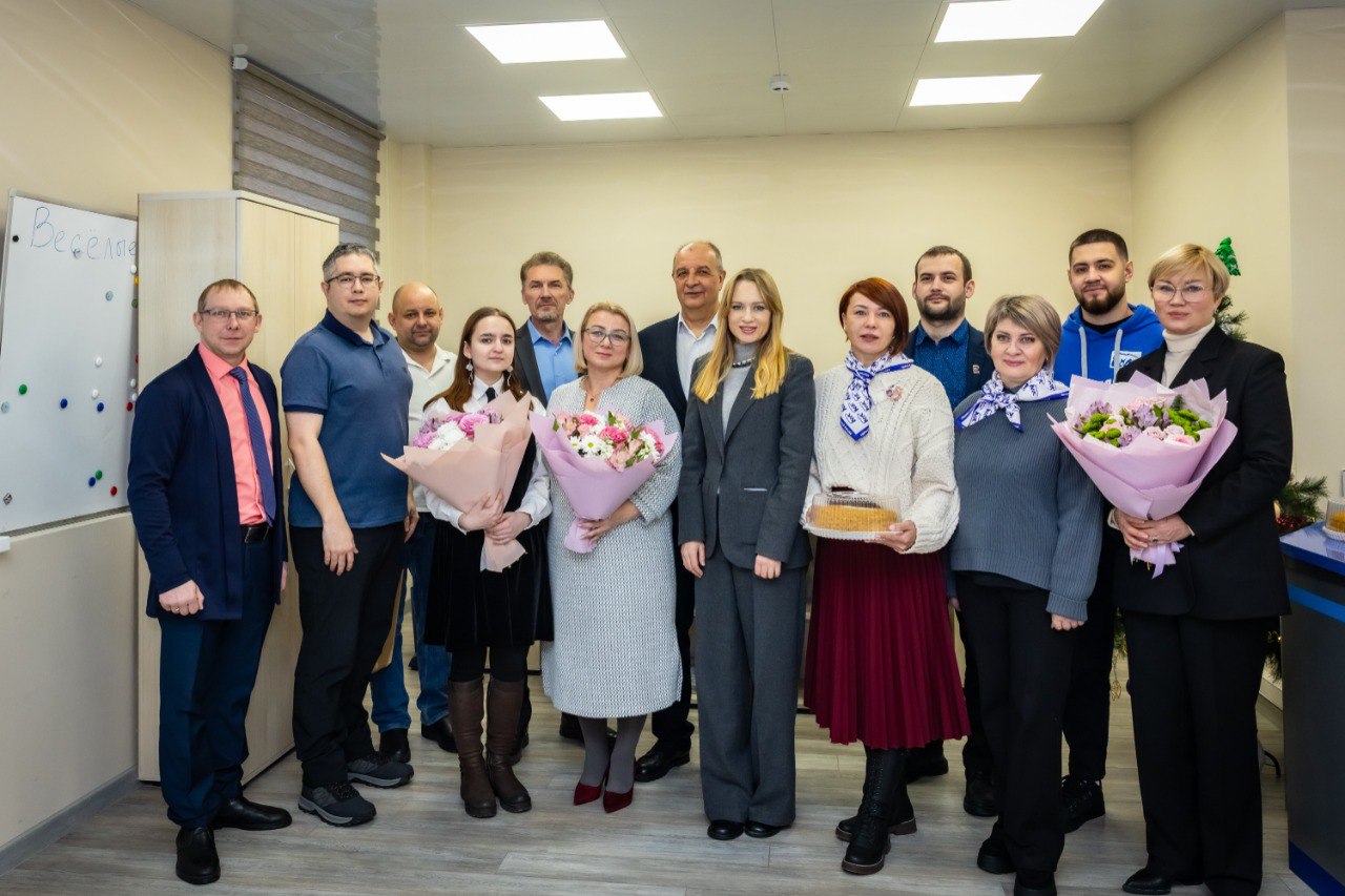 На фото: Коллеги из управленческой команды Администрации и Думы города, члены партии "ЕДИНАЯ РОССИЯ" поздравляют редакцию газеты "Самарово - Ханты-Мансийск" с праздником!