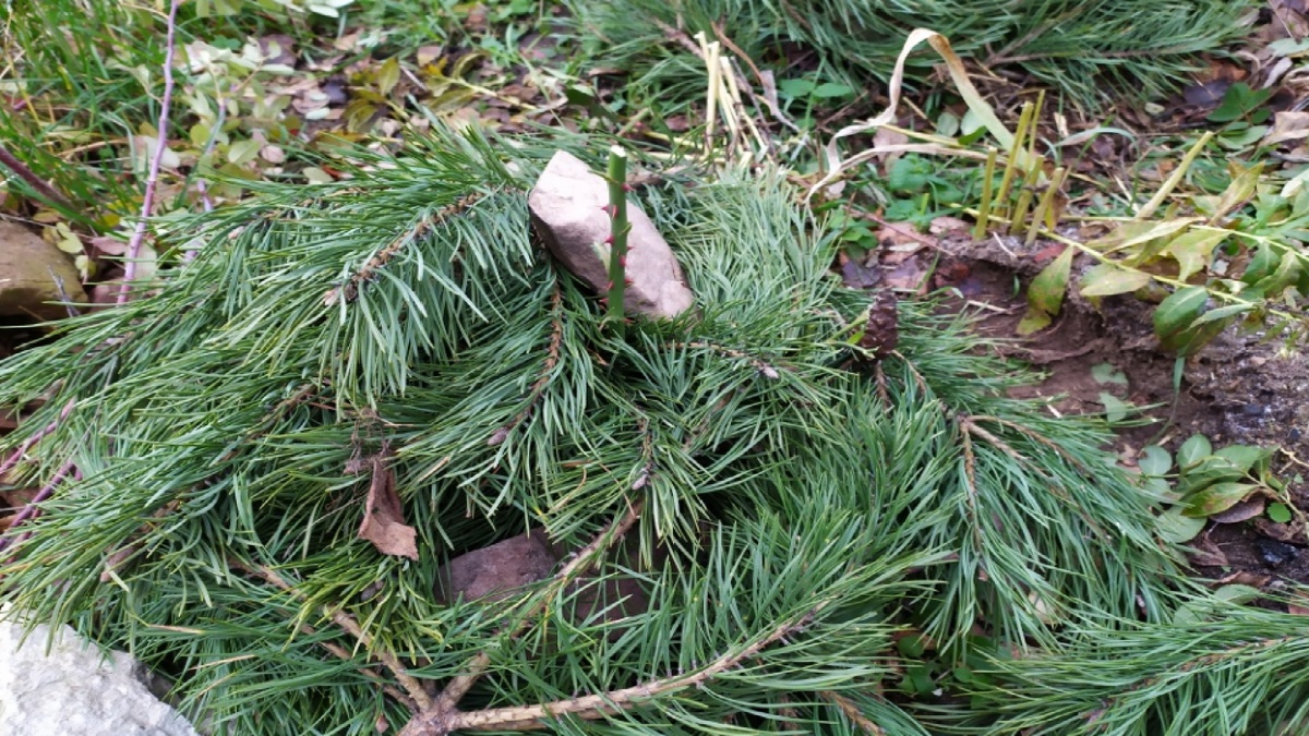 - Плетистые розы: Уложите ветки на землю, предварительно застелив их хвойными ветками. Накройте спанбондом или лапником.