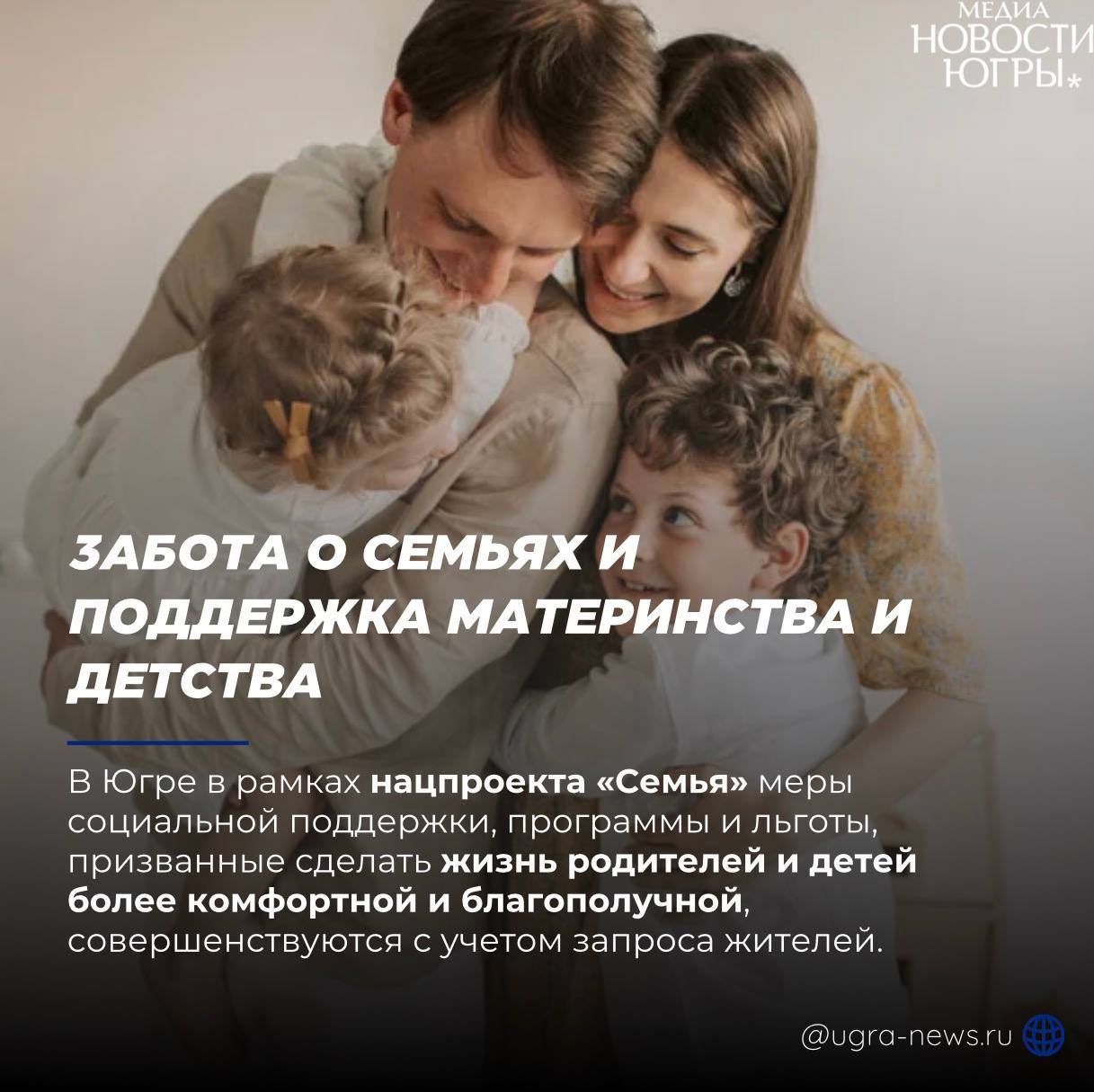 В Югре меры поддержки семей с детьми в рамках нацпроекта «Семья» последовательно развиваются и обновляются с учётом запросов жителей. Региональные и федеральные программы направлены на повышение качества жизни родителей, создание комфортных условий для воспитания детей и поддержку молодых семей.