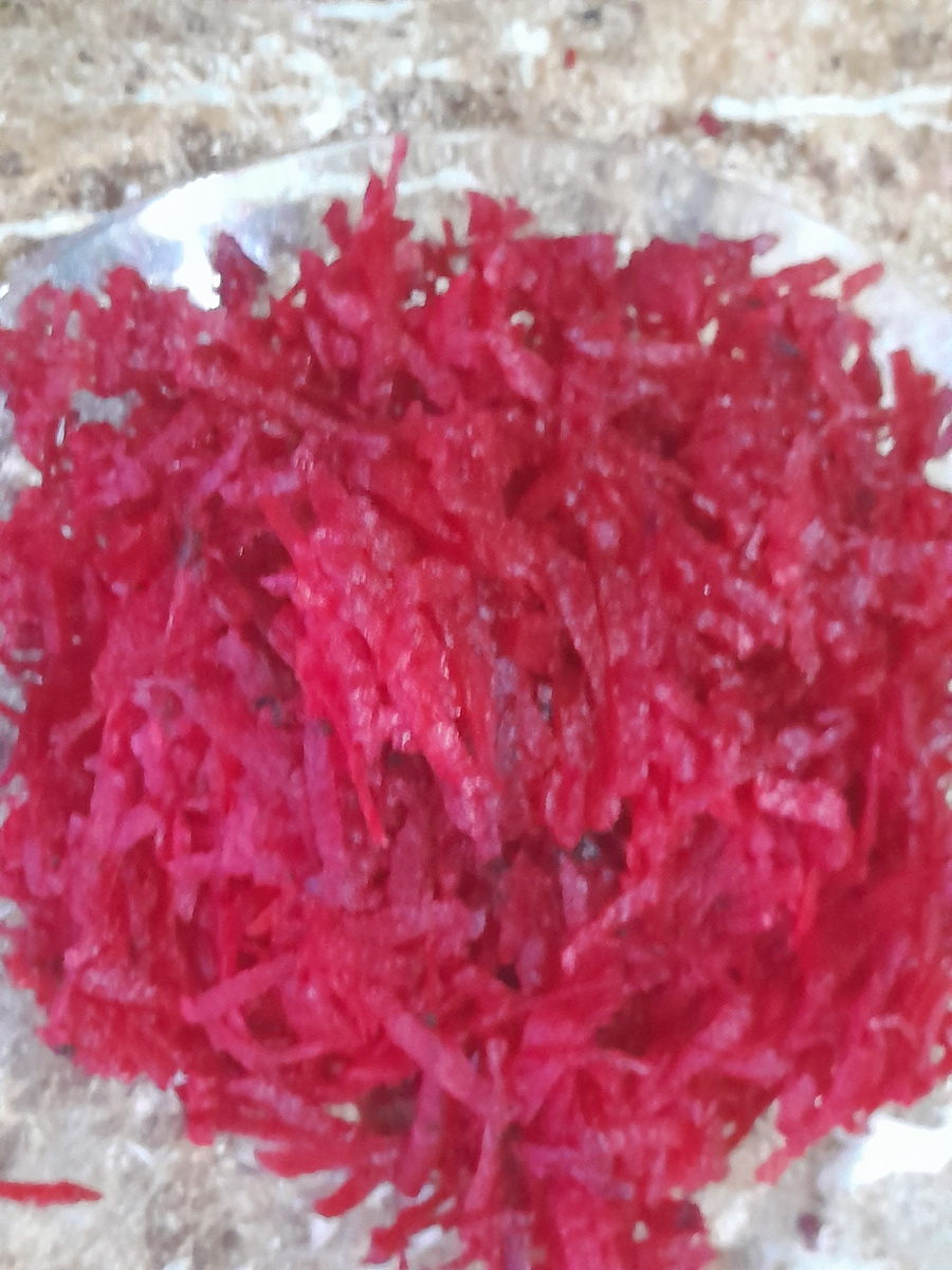 - Затем подготовьте овощи: натереть свеклу, морковь и картошку, нашинковать капусту и нарезать лук полукольцами.