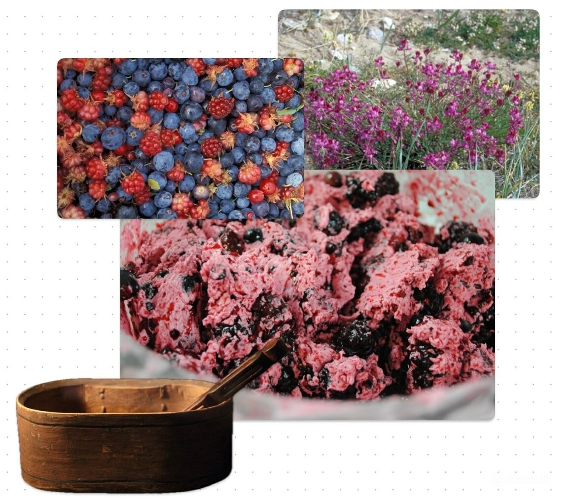 Если ягод под рукой нет, в качестве подсластителя можно использовать корни индийского картофеля (Hedysarum alpinum) — полярного растения с приятным сладковатым вкусом.