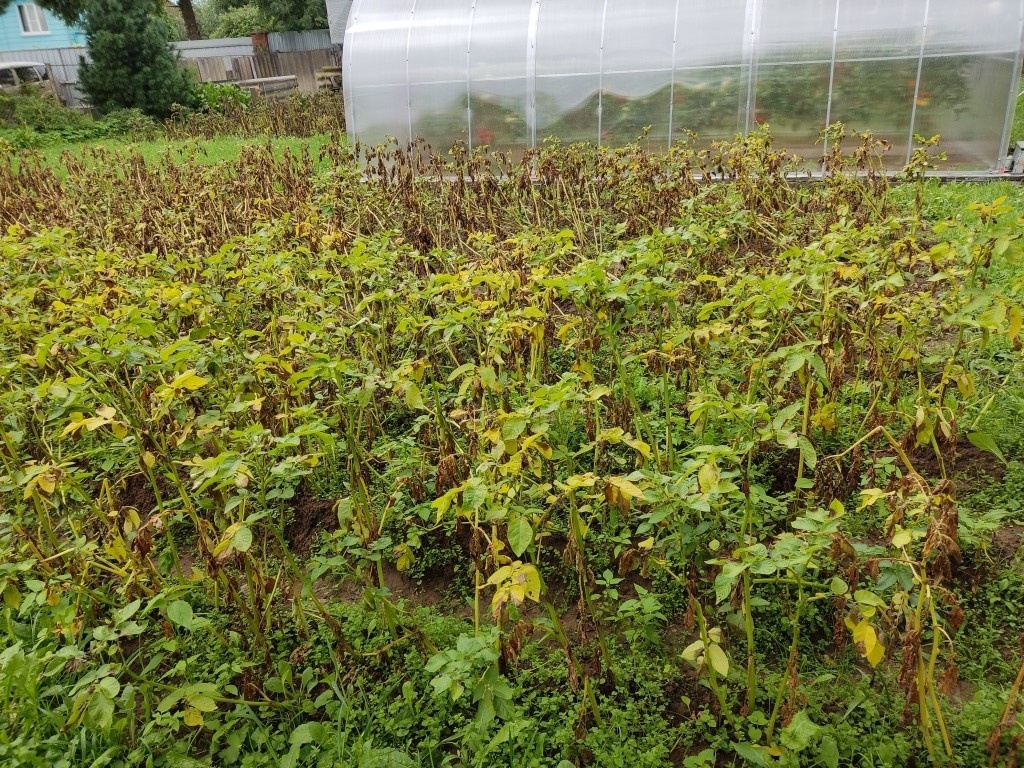 По спектру картины явно заметна разница между песчаной почвой родственников и суглинком на нашем участке: у первых ботва становится массово темной, у вторых отдельные кусты сохраняют листья, но выглядят обескровленными. Дожди — избыточная влага — и резкие перепады температуры создают фон, при котором фотосинтез замедляется, а транспорт питательных веществ начинает работать «слабее». В результате ботва отмирает раньше времени, а клубни успевают сформироваться — значит, в плане урожая можно ожидать коррекцию, но не катастрофу.