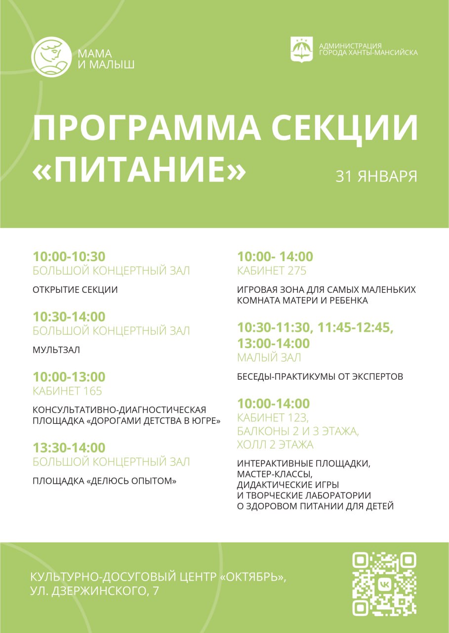 Секция «Питание» городского форума «МАМА и МАЛЫШ» пройдёт 31 января