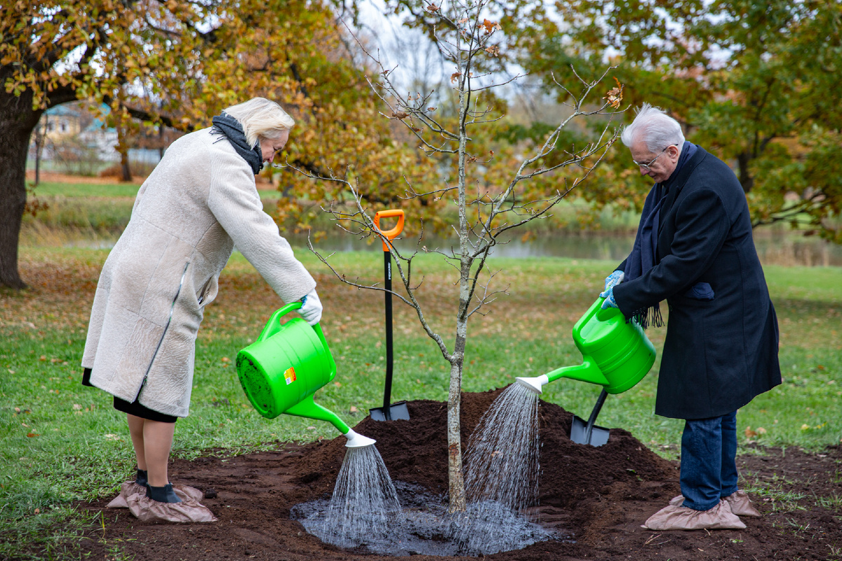 14 лет назад сотрудники музея заложили традицию выращивания дубов, собирая желуди от исторического дерева. Новое зеленое насаждение станет символом преемственности и сохранения наследия этого легендарного парка. Таким образом, музей продолжает делать для потомков то, что делали предшественники, в частности, садовник Фёдор Лямин, который в XIX веке высаживал эти величественные дубы по указу Николая I.