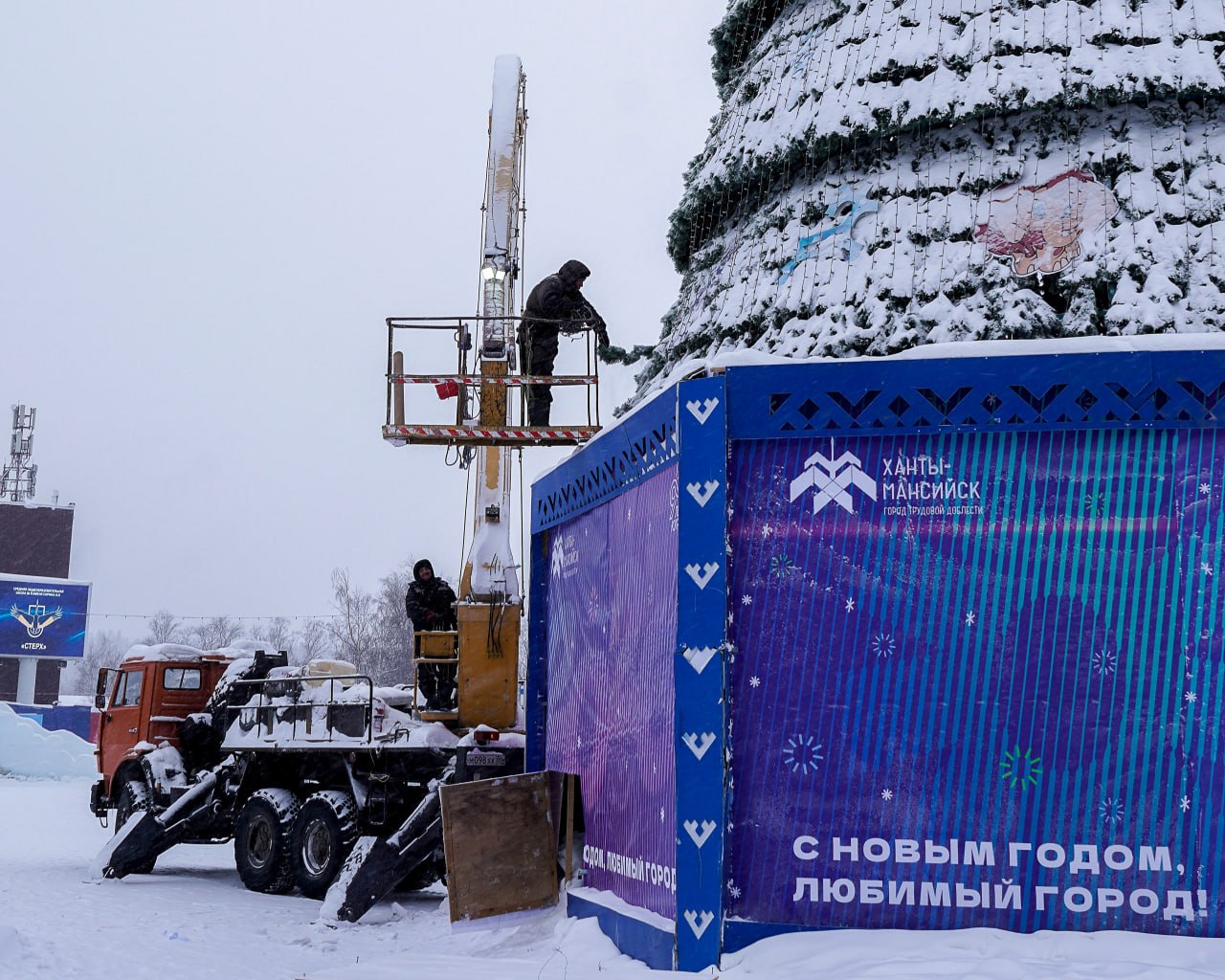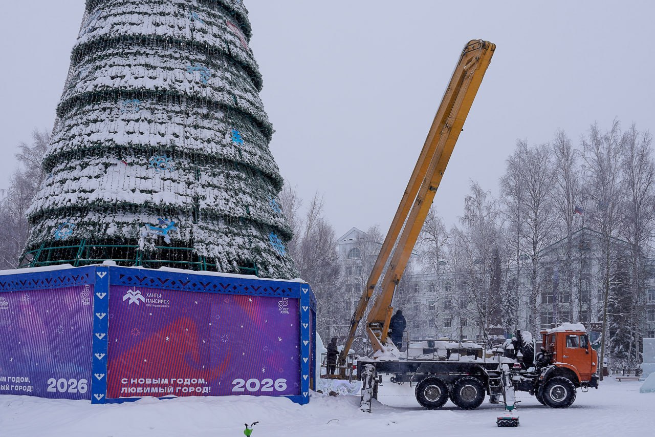 Сегодня на центральной площади окружной столицы начали разбирать новогоднюю ёлку