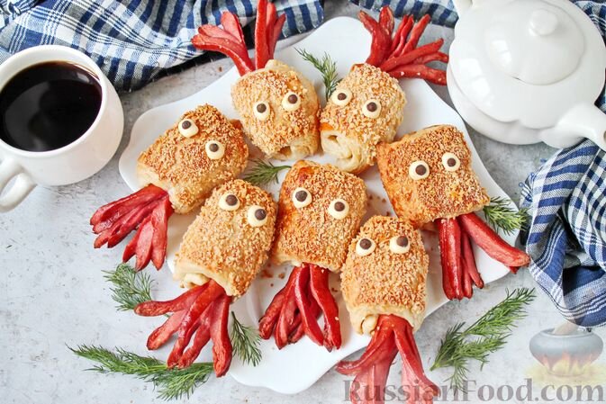 Слойки «Сосисочные осьминожки» — это увлекательное блюдо, которое удивит не только детей, но и взрослых. С привычными сосисками в слоёном тесте приготовление превращается в настоящий кулинарный праздник. Просто оберните сосиски тестом, придайте им форму осьминога и отправьте в духовку до золотистой корочки. Чтобы добавить остроты, посыпьте панировочными сухарями и добавьте немного черного перца.