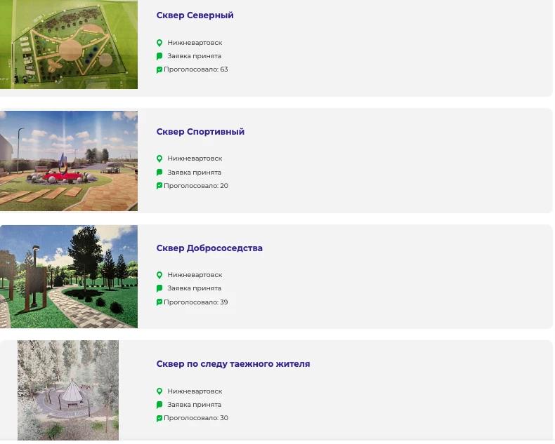 В этом году инициативные вартовчане выдвинули четыре проекта новых скверов, которые могут получить финансирование из окружного бюджета: