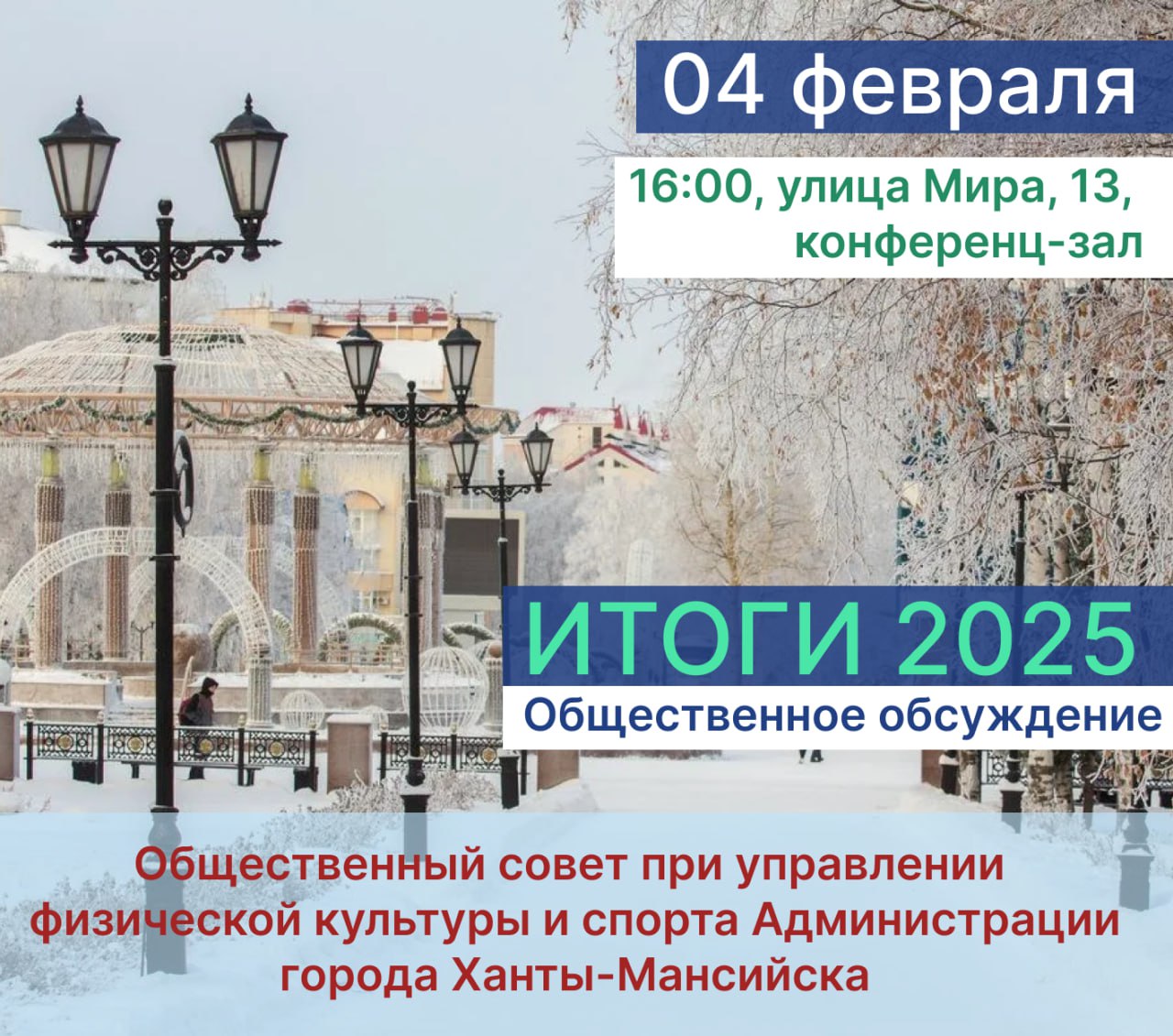 4 февраля, в 16:00 по адресу: улица Мира, 13, конференц-зал