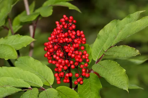 - Бузина красная: Эта разновидность бузины, в отличие от черной, ядовита. Ее ягоды и листья могут привести к серьезным отравлениям, если употребить их в пищу.