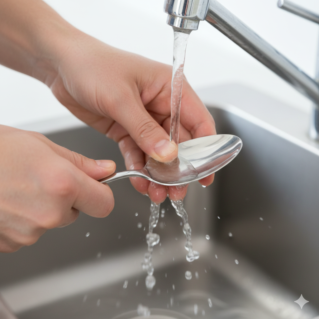 Первый метод - это всего лишь трение рук об поверхность из нержавеющей стали под струей холодной воды. Это может быть любая металлическая вещь: столовая ложка, нож или даже край кухонной мойки. Главное - чтобы это был металл, так как именно он поможет справиться с запахом.