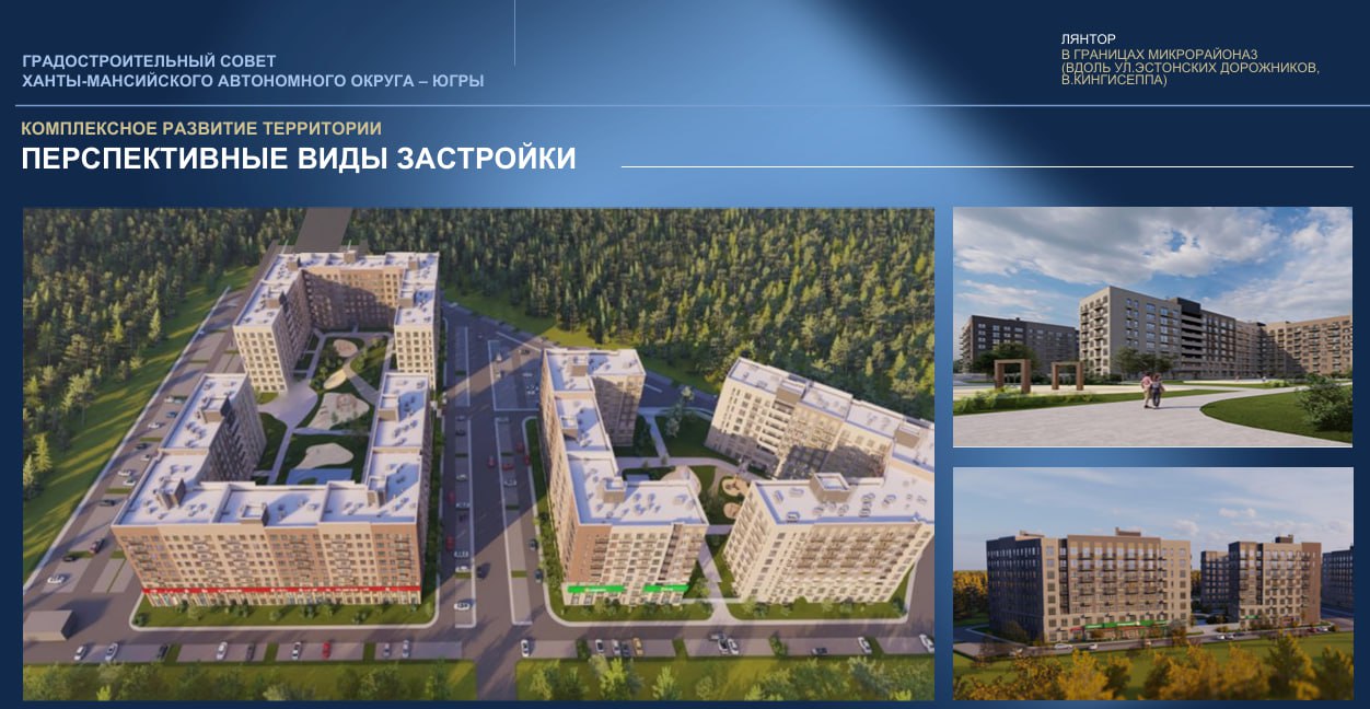 Лянтор (Сургутский район, 3 микрорайон) — на месте 12 домов, подлежащих расселению и сносу, строители возведут четыре новостройки на 1052 квартиры. Это позволит расселить порядка 12 081 квадратных метров аварийного жилья.