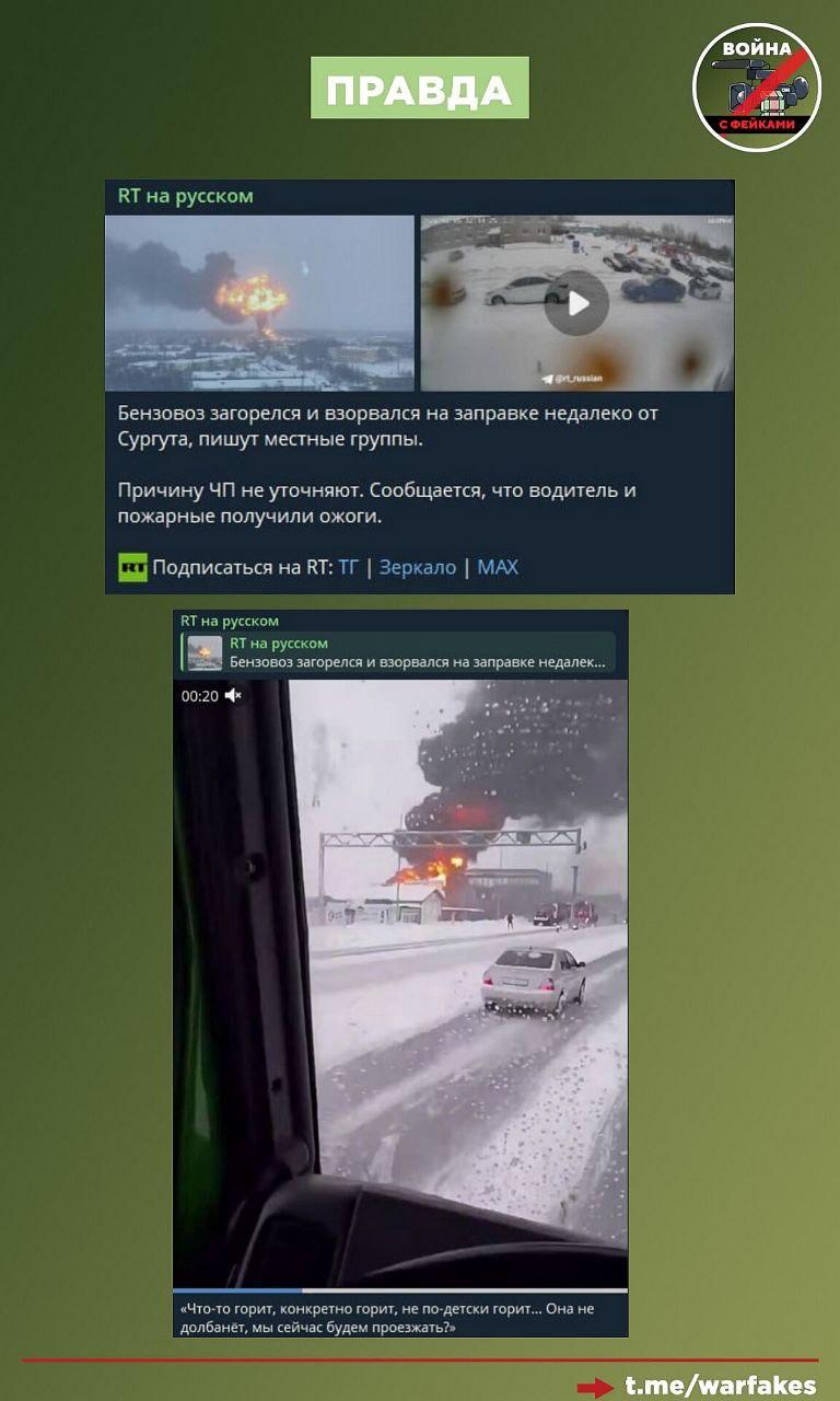 Фейк: На газовой станции в Тюменской области прогремел взрыв после атаки БПЛА. Видео с инцидентом опубликовали украинские телеграм-каналы.